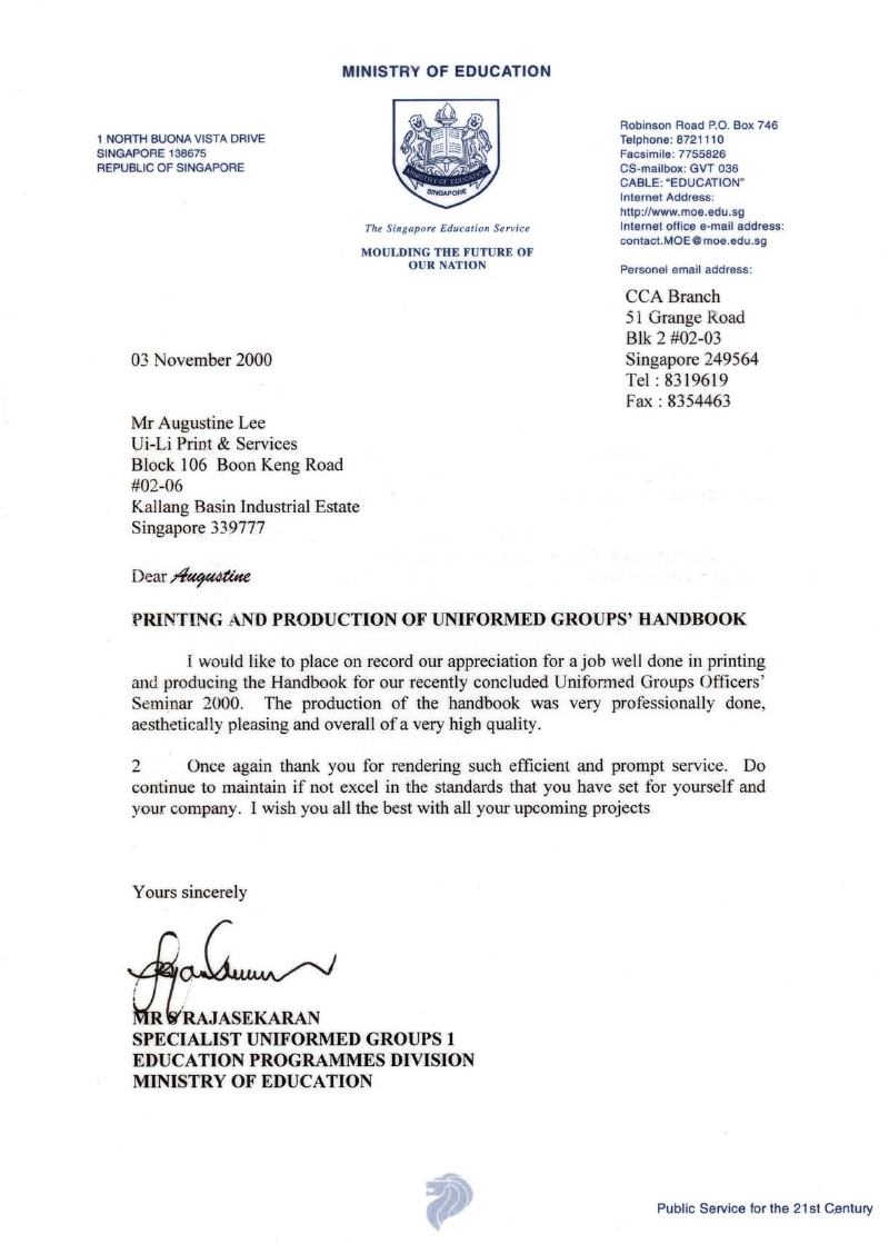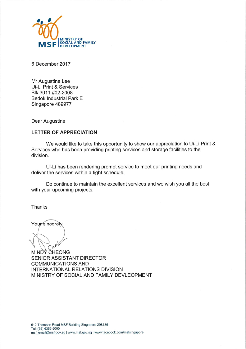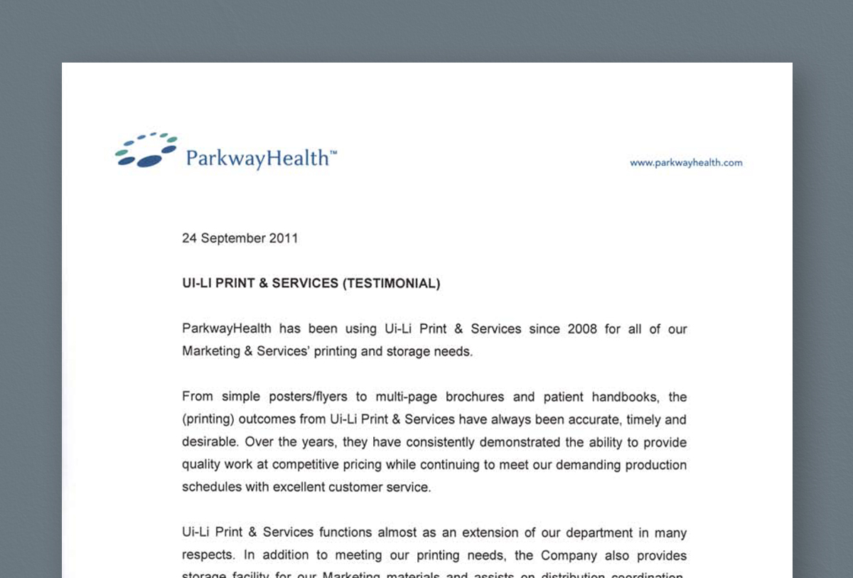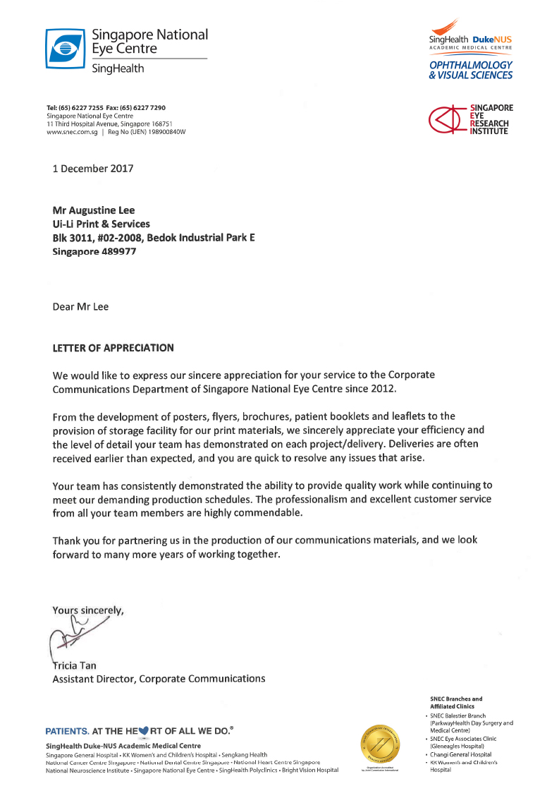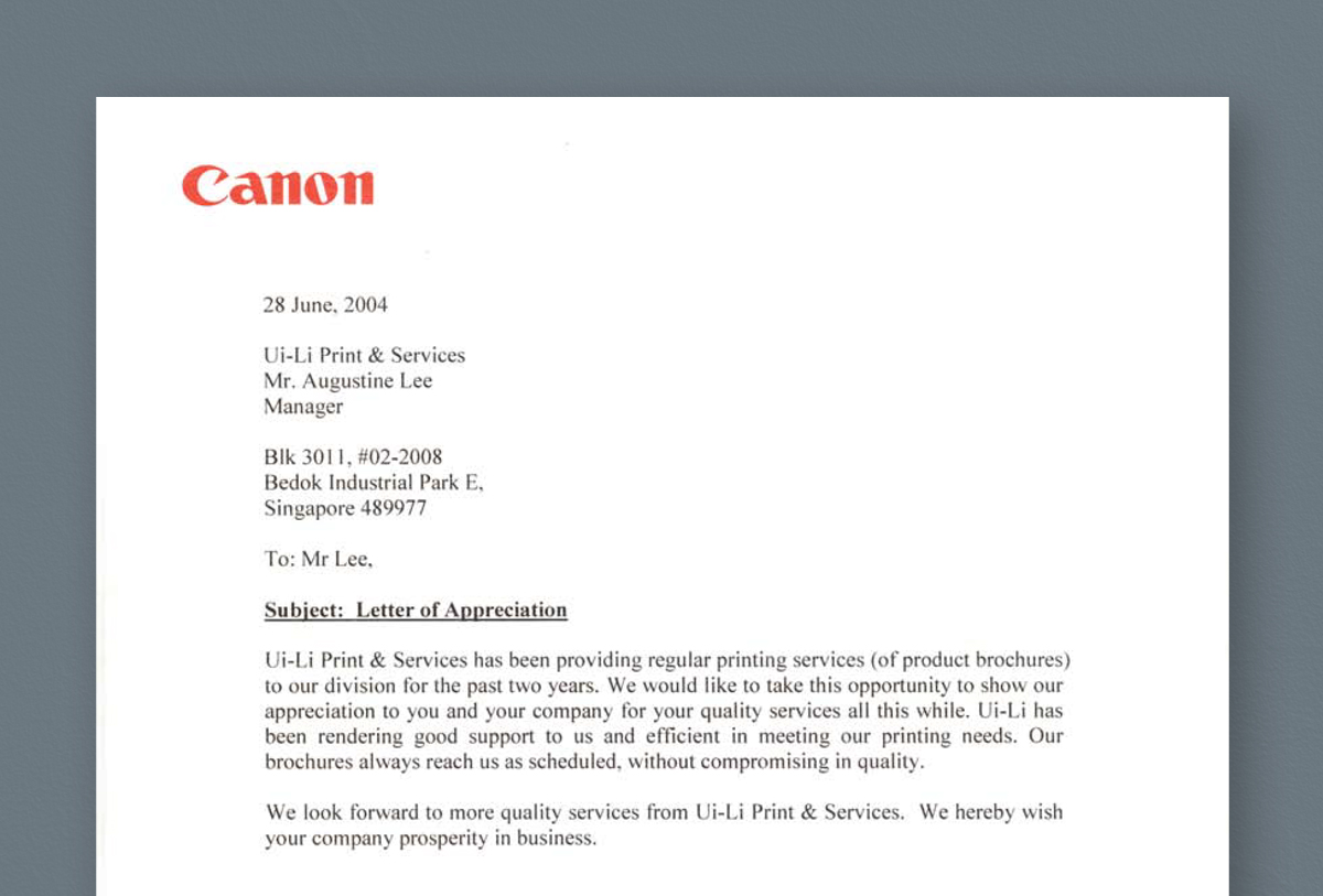 To provide exceptional services and to follow through on our promises. We will strive to deliver individualised solutions to all our client's printing needs and add value to our clients' businesses. Ui-Li’s staffs are focused on providing great services and forming lasting relationships with our clients.